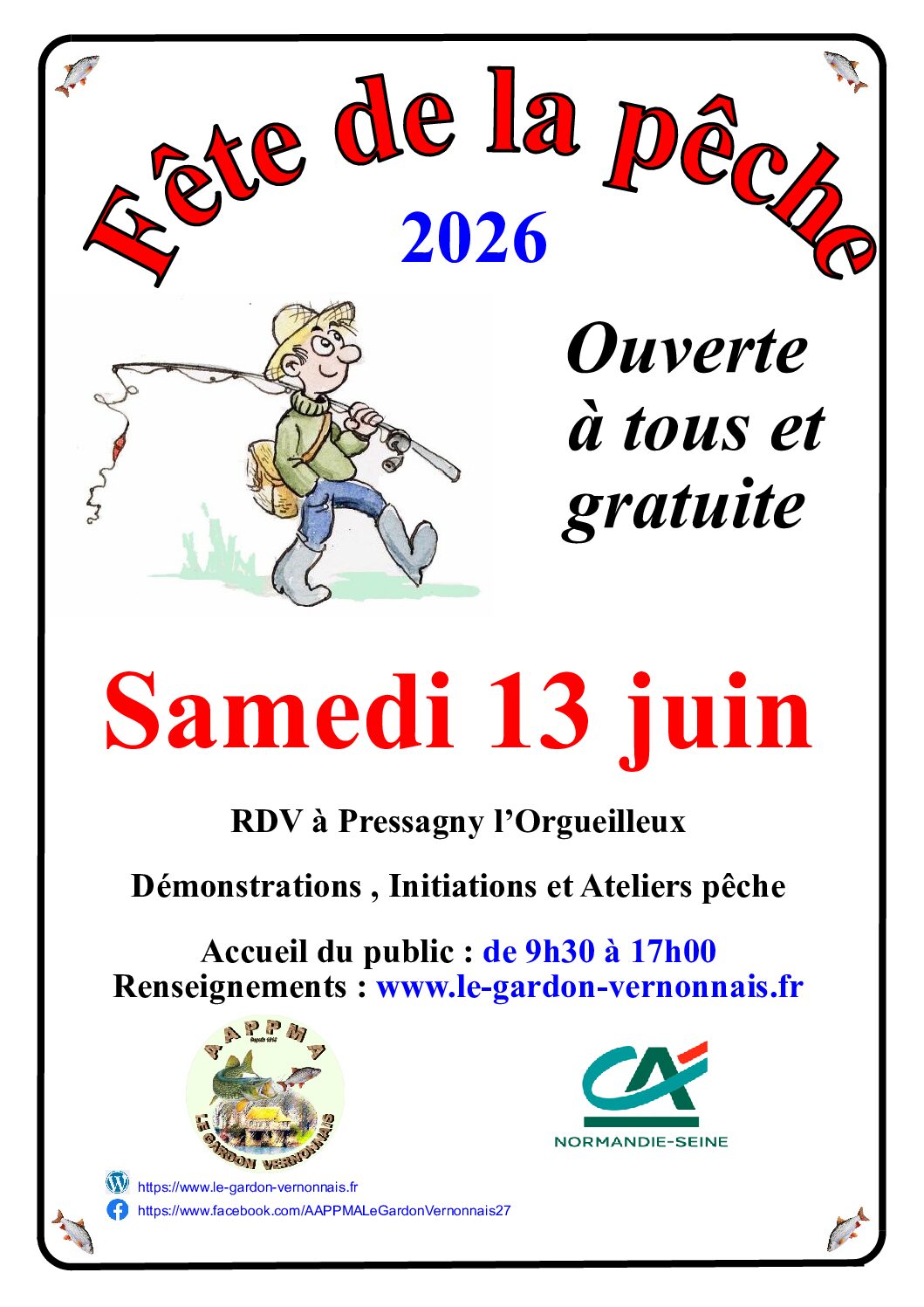 À vos agendas ! Samedi 13 juin 2026 Lieu : Pressagny l’Orgueilleux – De 9h30 à 17h00 Amateurs de pêche, familles et curieux, venez célébrer ensemble la passion de la pêche dans une ambiance...